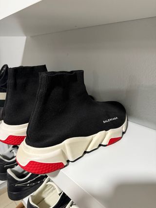 Zapatillas Balenciaga Speed Sock en color negro y rojo. Están en muy buen estado y son muy cómodas. - Son unas zapatillas de punto de alta calidad. - La suela es gruesa y blanca con detalles rojos. - Ideales para un look deportivo y moderno. - sin caja, se tiro hace mucho.