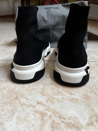 Zapatillas Balenciaga Speed Sock en talla 44. Combinan el negro y blanco para un look moderno. - Diseño tipo calcetín. - Suela de goma con detalles. - Logo de la marca en la parte lateral. 100% originales no tengo el ticket ni la caja
