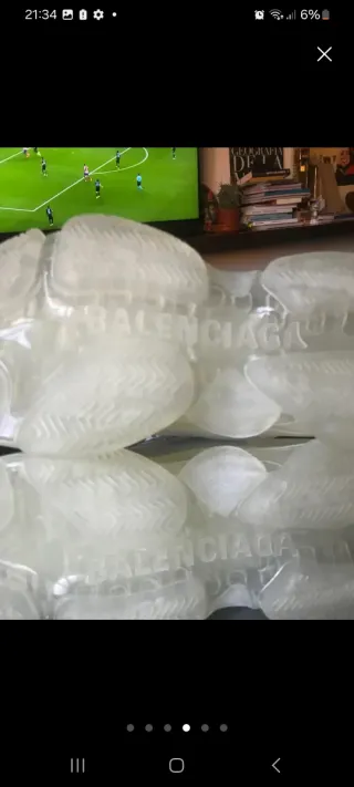 👟 Balenciaga Triple S Clear Sole verde – Talla 39 Estado: Usadas una sola vez, en excelente estado Autenticidad: 100% originales Compra: Adquiridas en Miami (EE. UU.) Incluye: Bolsa guardapolvos Balenciaga Descripción: Zapatillas Balenciaga Triple S Clear Sole en color verde/mint, talla 39, originales. Fueron compradas en Miami y usadas únicamente una vez, por lo que se encuentran impecables, tal y como se aprecia en las fotos. Modelo icónico de Balenciaga con suela transparente verde, número de talla visible en la puntera y logo lateral. Muy cómodas y con diseño statement, perfectas para looks urbanos y actuales.