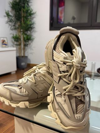 Zapatillas Balenciaga en tonos beige y gris. - Diseño deportivo y moderno. - Detalle de cordones. - Suela robusta.
