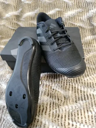 Zapatillas de ciclismo Adidas The Road Shoes 2.0 en color negro. - Diseño deportivo y moderno. - Cierre de cordones. - Suela con tacos para pedales automáticos. - Oferton, las compré por 120€ en oferta , pero mi mujer no usa la bici desde el embarazo . - negociables recogida en mano. - Talla 38