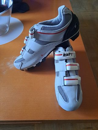 Zapatillas para spining. Lleva los enganches para la bici de calas. Número 39 pero pequeño, yo llevo un 38 y me van perfectas. Utilizadas en interior.