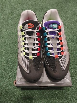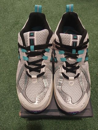 Disseny en malla transpirable. Flyware. Només s'ha corregut tres vegades amb elles. Estan com noves, especialment la sola, cordons i estructura general. Tenen alguna taca exterior, però és netejable. El logo intern del peu dret està desgastat, però no és per excés d'ús, ja que han corregut molt pocs quilòmetres, de debò. Me les venc perquè van ser un regal, però prefereixo anar en bici que córrer.