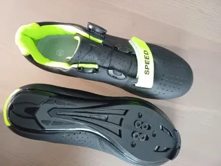 Zapatillas de ciclismo con un diseño moderno y llamativo. Las zapatillas de ciclismo son Compatible con sistemas de calas / pedales de 2 o 3 orificios, incluidos Look Delta, SPD, SPD-R y SPD-SL. Se aplican a la conducción por carretera, los desplazamientos, las giras, la clase de spinning, las bicicletas de montaña y las bicicletas de pelotón de interior. - Cierre de dial para un ajuste preciso. - Tira de velcro en la parte delantera. - Interior con forro de color verde brillante. - Exterior perforado para mayor ventilación.