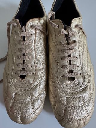 Zapatillas originales Dirk Bikkembergs modelo VINTAGE Low Soccer, estética Y2K, talla 40 EU. Piel marrón tipo charol, suela de tacos inspirada en fútbol sala, con caja original. Uso normal, sin roturas ni deformaciones, tacos todavía con buen relieve. Modelo vintage muy difícil de encontrar. Se han utilizado muy pocas veces y se venden por falta de uso; la piel muestra desgaste propio de los años pero mantiene su tono original, con algo menos de brillo, conservando en conjunto un estado muy bueno. Se adjuntan fotos donde se ve perfectamente su estado por todos los lados. Precio negociable, pero dentro de un orden.