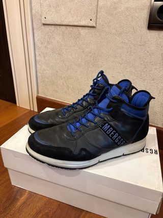 Zapatillas altas de la marca Bikkembergs. - Combinación de materiales en negro y azul. - Cierre con cordones. -Buen estado Precio original: 220€