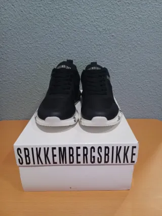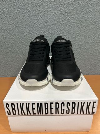 Zapatillas Bikkembergs originales a estrenar. - Diseño moderno en color negro y blanco. - Logotipo de la marca visible en la zapatilla y la caja.