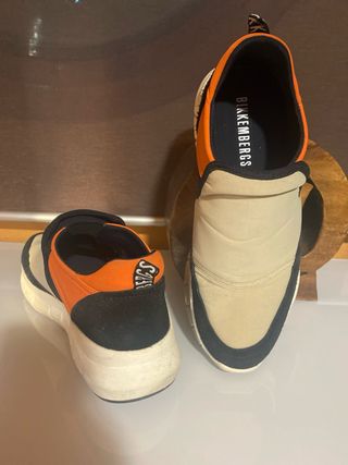 Zapatillas de la marca Bikkembergs, originales, con el logo de la marca en el lateral, adjunto fotos desde todos sus ángulos Una quemadura de la moto en una de ellas y desperfecto en la lengueta interior, ver 2 últimas fotos.