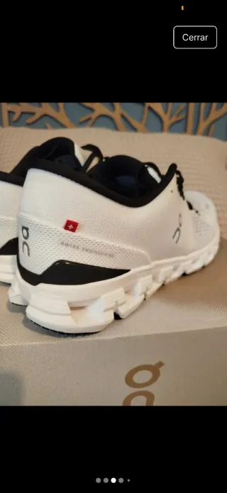 En muy buen estado, las usé dos días y me apretaban; no las he vuelto a usar más por eso las vendo😊 Son muy muy cómodas✅ Envío rapido - Combinación de colores gris y blanco. - Logo distintivo en el lateral.