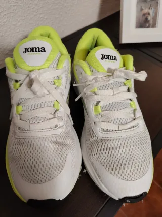 Zapatillas deportivas Joma con un diseño moderno y llamativo. - Parte superior de malla transpirable. - Detalles en color amarillo neón. - Cierre con cordones blancos Están puestos media hora no se aprecia bien en las fotos . Cuando se fue a ponerlos le había crecido el pie