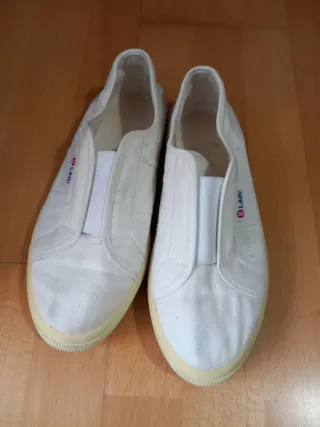 Zapatillas de lona estilo slip-on. Solo venta por envio excepto si hemos tenido contactos satisfactorios podemos quedar. - Diseño clásico y cómodo. - Detalle de elástico lateral para facilitar el calce. - Logo de la marca en el lateral.