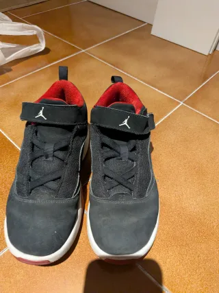 Zapatillas deportivas Jordan en color negro con detalles en rojo. - Cierre de velcro y cordones. - Logo de Jordan en blanco.
