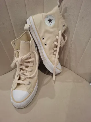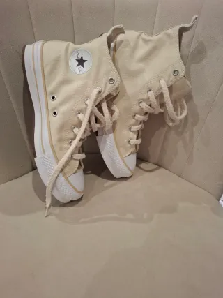 Zapatillas Converse de plataforma, un clásico reinventado. - Diseño alto. - Cordones blancos. - Suela gruesa blanca con detalles negros.