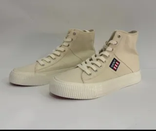 Zapatillas altas de lona en color beige y blanco. - Cierre de cordones. - Suela de goma. - Detalle de logo en el lateral.