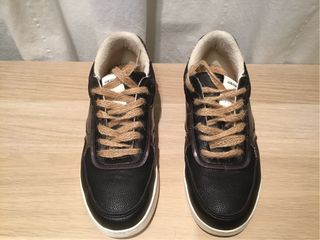 Zapatillas de diseño llamativo con el logo de la marca. - Exterior de cuero. - Suela de goma gruesa. - Cierre de cordones.