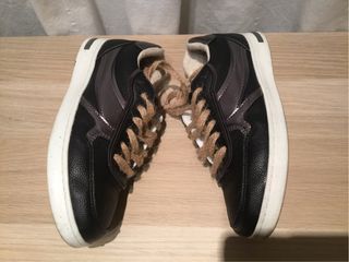 Zapatillas de la marca Geox en color negro, con cordones de esparto y blancos sin estrenar. Interior forrado para mayor comodidad. Muy poco uso, se venden por error de talla en la compra.