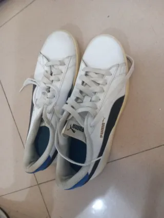 Zapatillas deportivas Puma de color blanco, talla 41 Perfectas para el día a día. - Diseño clásico con franja lateral. - Cierre de cordones. - Detalle de color azul en el talón.