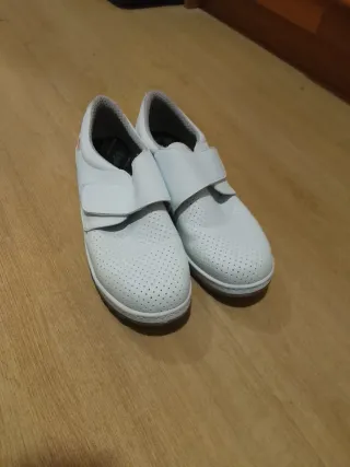 Zapatillas cómodas de la marca Duo en color blanco. Cuentan con cierre de velcro para un ajuste fácil. - Diseño con perforaciones. - Cierre de velcro ajustable.