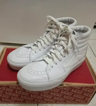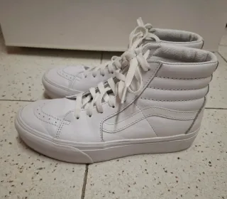 Zapatillas plataforma altas de piel en color blanco. Un par de puestas. Unisex, hombre ,mujer - Cierre con cordones. - Detalle de costuras. - Suela de goma. Nike, Converse, Adidas, DC, Múnich, Sirve Jordan, Billabong, Skate, Hip Hop