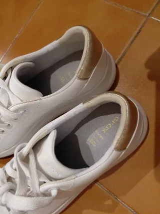 Zapatillas deportivas Geox, sin estrenar y en perfecto estado. Combinan un diseño moderno con detalles elegantes. - Color blanco con detalles dorados en el talón. - Cierre con cordones. - Suela cómoda y flexible.