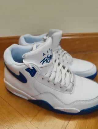 Zapatillas deportivas Nike Air Flight. - Diseño de corte alto. - Combinación de colores blanco y azul. - Detalle de logo Swoosh en azul.
