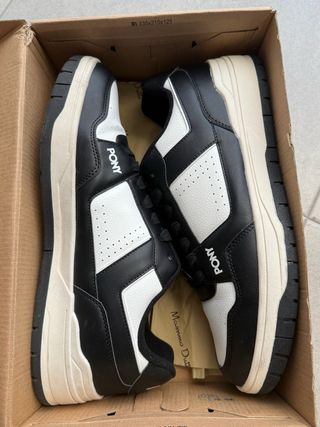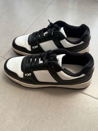 Zapatillas de la marca PONY en talla 46. Combinan los colores negro y blanco. - Diseño deportivo. - Cierre de cordones. - Detalle de perforaciones. mira mis recomendaciones