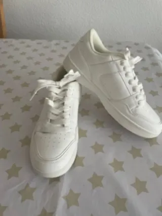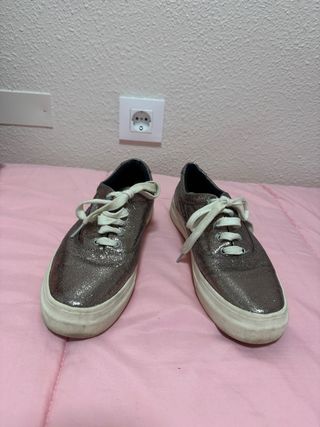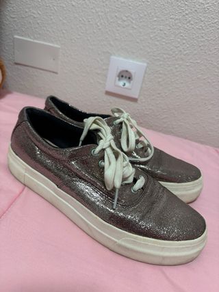 Zapatillas de la marca Pull&Bear con un acabado metalizado. - Diseño de zapatilla baja. - Cierre con cordones. - Suela de goma blanca. - no tiene desperfectos