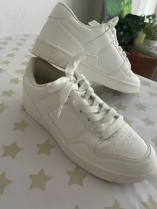 Zapatillas Munich de color blanco, con un diseño moderno y detalles en ante. apatillas, talla 46 combinan diseño elegante con comodidad. El clásico logo en forma de "X" en negro sobre fondo blanco les da un toque moderno y urbano. Características: • Talla: 46 • Estado: Como nuevas, apenas usadas • Color: Blanco con detalles en negro • Marca: Munich (originales) • Estilo: Deportivo / casual / urbano