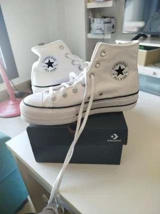 Zapatillas de la marca Converse en color blanco, - Diseño clásico y versátil. - Logo de Converse en la lengüeta y el lateral. Nuevas aún en su caja.