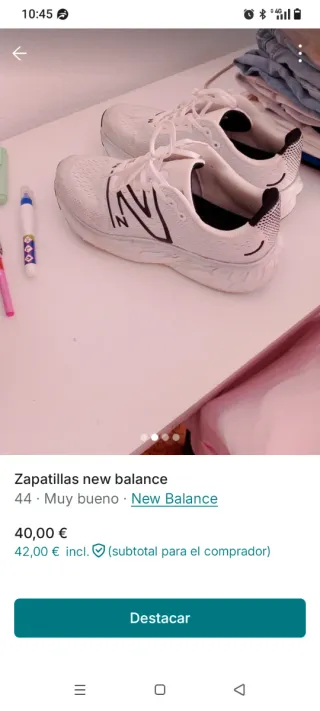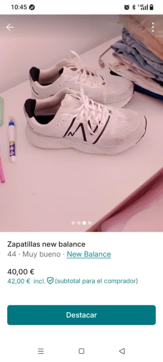 Zapatillas deportivas New Balance en color blanco. Perfectas para el día a día o para hacer deporte. - Talla 44. - Diseño moderno y cómodo.