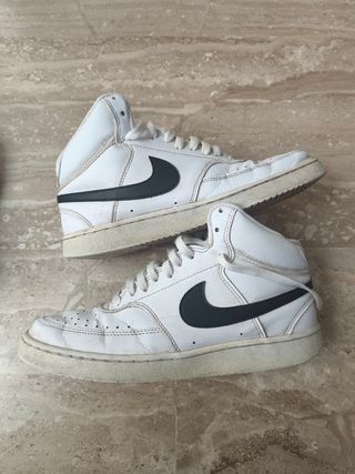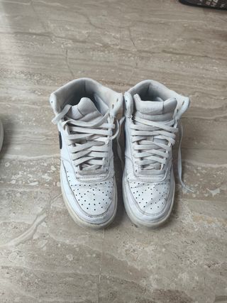 Zapatillas altas de la marca Nike. - Diseño clásico en blanco con detalles en negro. - Cierre con cordones.