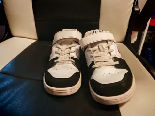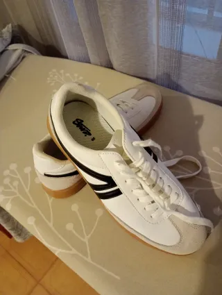 Zapatillas altas de estilo urbano con detalles dorados. - Diseño de caña alta. - Combinación de blanco y dorado. - Cierre con cordones. puesta una vez me quedan pequeñas , están nuevas
