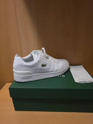 Zapatillas de la marca Lacoste en color blanco. Diseño clásico y versátil.las zapatillas solo tienen una puesta ,se puede ver en las fotos que estan en perfecto estado - Detalle del logo del cocodrilo. - Cierre con cordones.