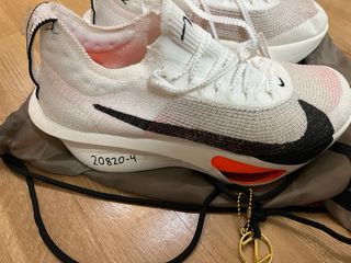 Zapatillas de running Nike Alphafly Next%. Solo usadas 2km para probarlas - Modelo V62. - Diseño en blanco y naranja. - Incluye bolsa de transporte.
