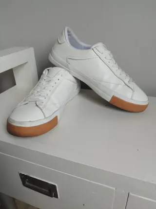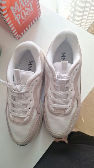 Zapatillas casuales de la marca Mango. - Zapatillas de color blanco. - Talla 39. - Largo de pie: 25,5 cm. - Tacón: 3 cm.