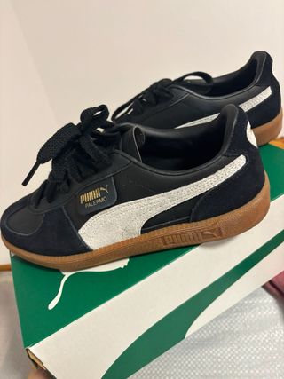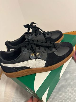 Zapatillas Puma Palermo con un diseño clásico y urbano. - Nueva sin estrenar con su caja. - Exterior en ante y piel. - Detalle de la franja característica de Puma. - Suela de goma marrón.
