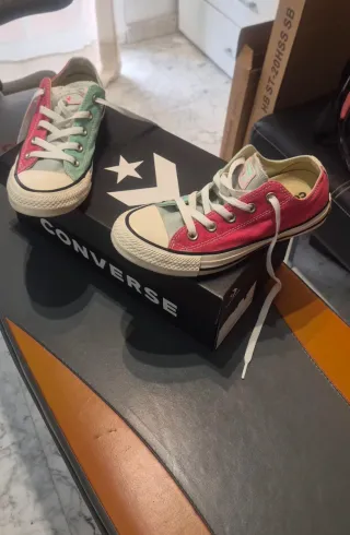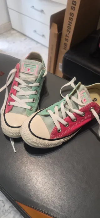 Zapatillas bajas de la marca Converse con un diseño bicolor. - Combinación de rosa y verde. - Cordones blancos. - Suela de goma blanca.