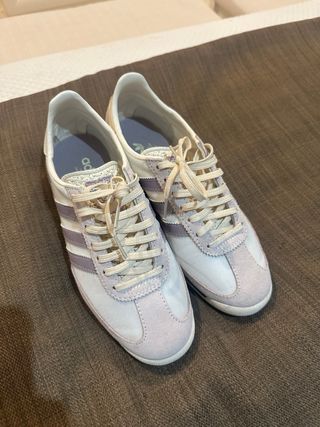 Zapatillas deportivas Adidas con un diseño moderno y cómodo. - Combinación de blanco y morado. - Tres rayas características de la marca. vendo porque me quedan pequeñas, solo me las he puesto una vez. Están en perfecto estado como se aprecia en la foto