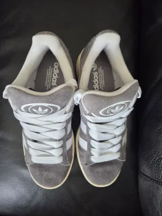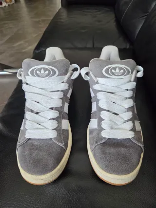 Zapatillas Adidas Campus talla 40,5 en color gris con detalles blancos. Un clásico de adidas para el día a día. Se han usado 2 veces por confusión en la compra de la talla y por ser pequeñas no se utilizaron, paso el tiempo y ya no se ha pudo devolver. - Diseño de caña baja. - Tres rayas laterales. - Logo de Adidas en la lengüeta.