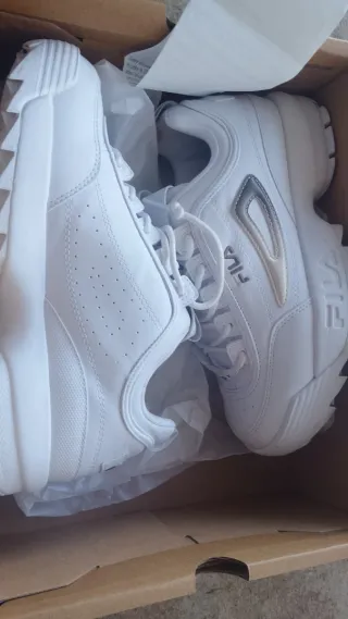 Zapatillas deportivas Fila en color blanco con detalles plateados. - Diseño moderno y cómodo. - Logo de Fila en el lateral. Usadas medio dia, coste real 40€ Las vendo por 25€
