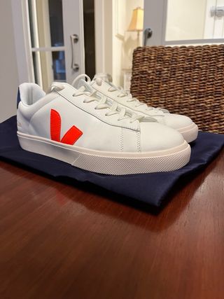 Zapatillas de la marca Veja en color blanco con detalles en rojo. - Diseño deportivo y moderno. - Logo de Veja en el lateral.