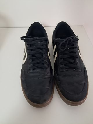 Zapatillas deportivas de la marca Hummel. - Diseño clásico en negro con detalles blancos. - Suela de goma marrón.