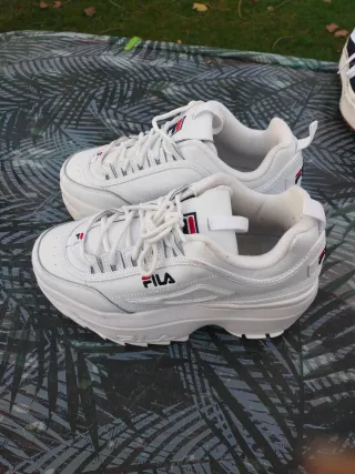 Zapatillas deportivas de la marca Fila en color blanco. - Diseño moderno y cómodo. - Cierre con cordones. - Suela gruesa y robusta.
