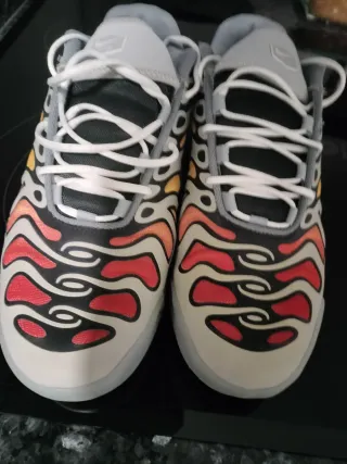 Zapatillas deportivas Nike con un diseño llamativo y moderno. - Combinación de colores vibrantes. - Cierre con cordones blancos. - Detalle de líneas onduladas en la parte delantera.