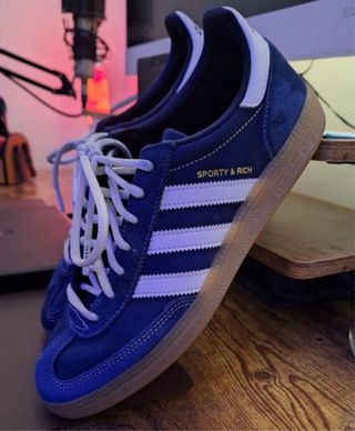 Zapatillas deportivas de la marca Adidas en colaboración con Sporty & Rich. - Diseño de ante azul marino. - Detalles de las tres rayas blancas. - Incluye cordones blancos de repuesto.