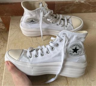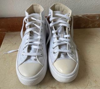 Zapatillas Converse de plataforma en color blanco. Tienen poco uso y están en buen estado. - Diseño de caña alta. - Cordones blancos. - Suela gruesa de plataforma.
