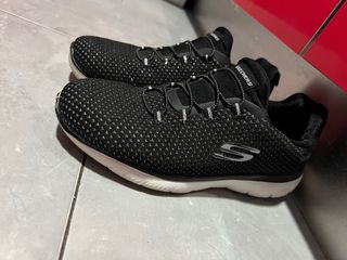 Zapatillas deportivas Skechers en color negro con detalles blancos. Cuentan con un diseño moderno y cómodo. - Tejido transpirable. - Cierre con cordones elásticos. - Suela blanca. - Logo de Skechers en el lateral.