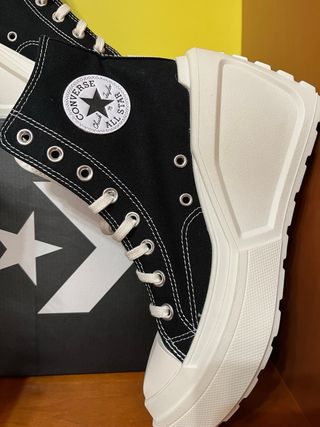 Zapatillas altas Converse con plataforma Chuck 70 de Luxe Wedge Hi. - Diseño clásico en negro con detalles blancos. - Plataforma gruesa y moderna. - Cordones blancos.