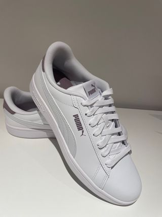 Zapatillas deportivas Puma en color blanco con detalles en morado. - Diseño clásico y versátil. - Cierre con cordones. - Logo de Puma en el lateral y la lengüeta.