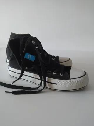 Zapatillas altas de lona con suela de plataforma. No hago envíos - Cierre con cordones. - Detalle de etiqueta azul en el lateral. - Suela blanca con doble línea negra.